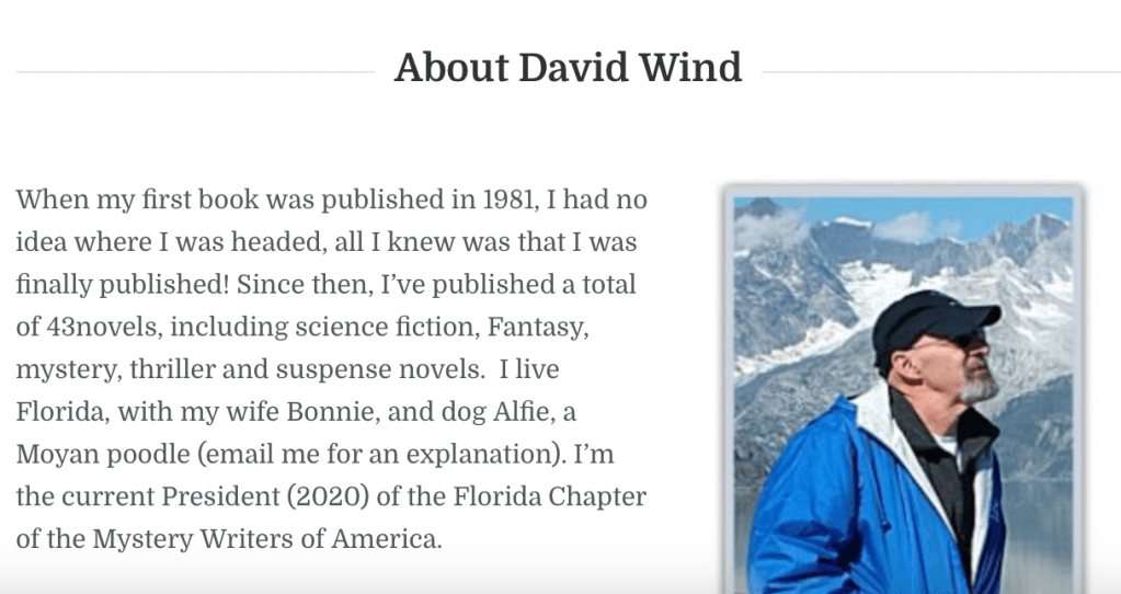 Where I became intrigued in this case was in the author biography, where Monica Barrie introduces herself with a brief description including the mention that she is the wife of David Wind.