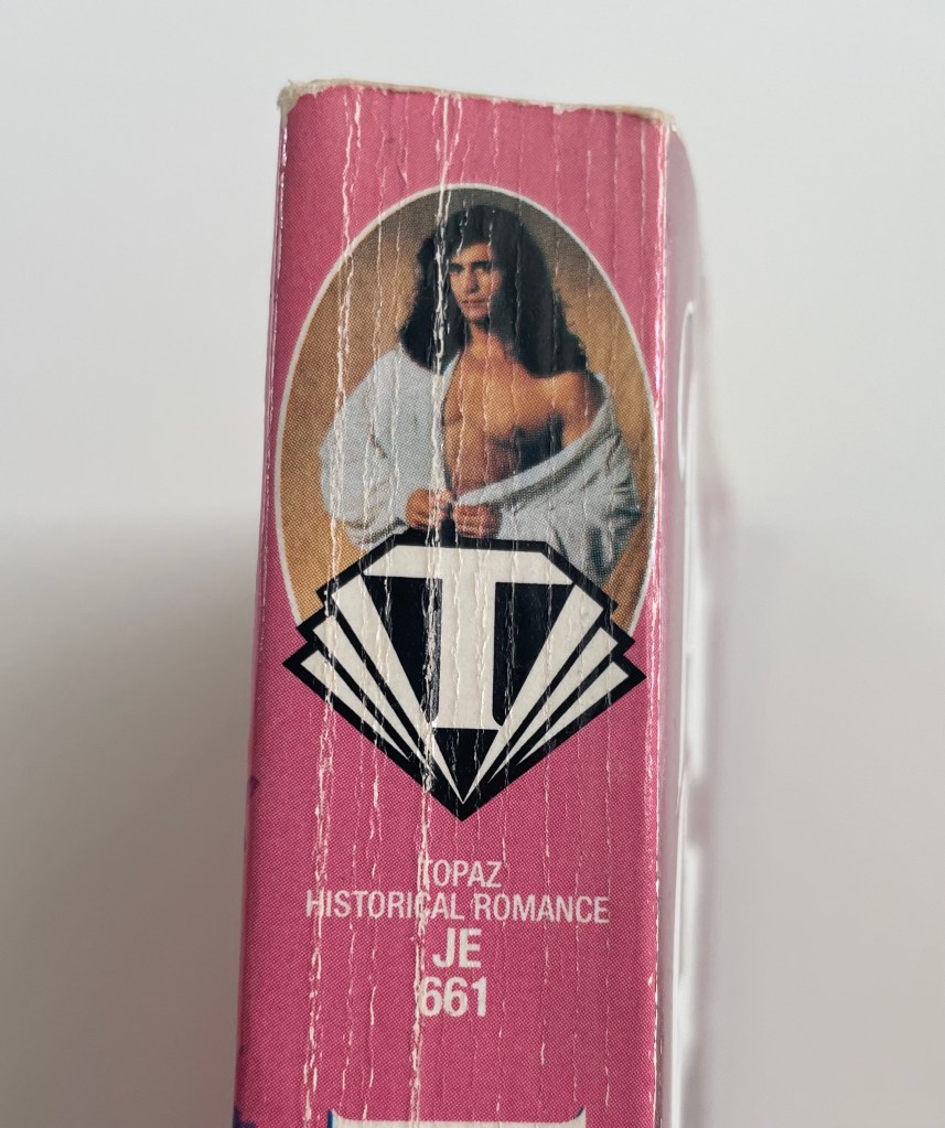 In May 1993, Penguin USA (as it was known at the time) announced the upcoming launch of Topaz, an historical romance line that would feature well-known authors like Mary Jo Putney and Patricia Gaffney, who were already regulars in Penguin’s Signet line. The unique marketing twist was that each book in the line would feature the same man on the cover- Steve Sandalis, the Topaz Man- and that promotion would focus as much on him as the authors. A photo of Sandalis was also integrated into Topaz’s spine logo.